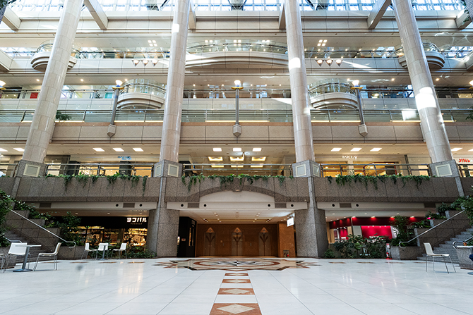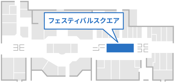 ショッピングゾーンに囲まれた空間。各種プロモーションなどに対応する館内スペース。5Fまで吹き抜けのショッピングモール“ランドマークプラザ”1Fに位置するフェスティバルスクエアは、みなとみらい駅からの往来も多く、つねに注目を集めるスペースです。