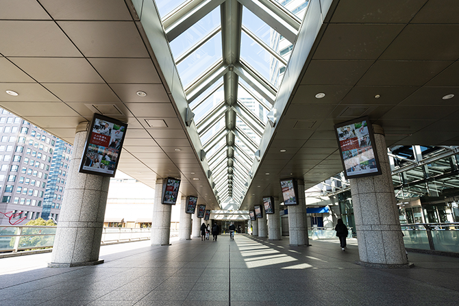 多くの人が行きかい、来館者へいち早くアピールできるスペース。桜木町駅から“動く歩道”を通じてダイレクトにアプローチでき、ランドマークプラザの入口に位置しており、つねに人通りの絶えない絶好のポジションで、効果的なプロモーションイベントが実現します。