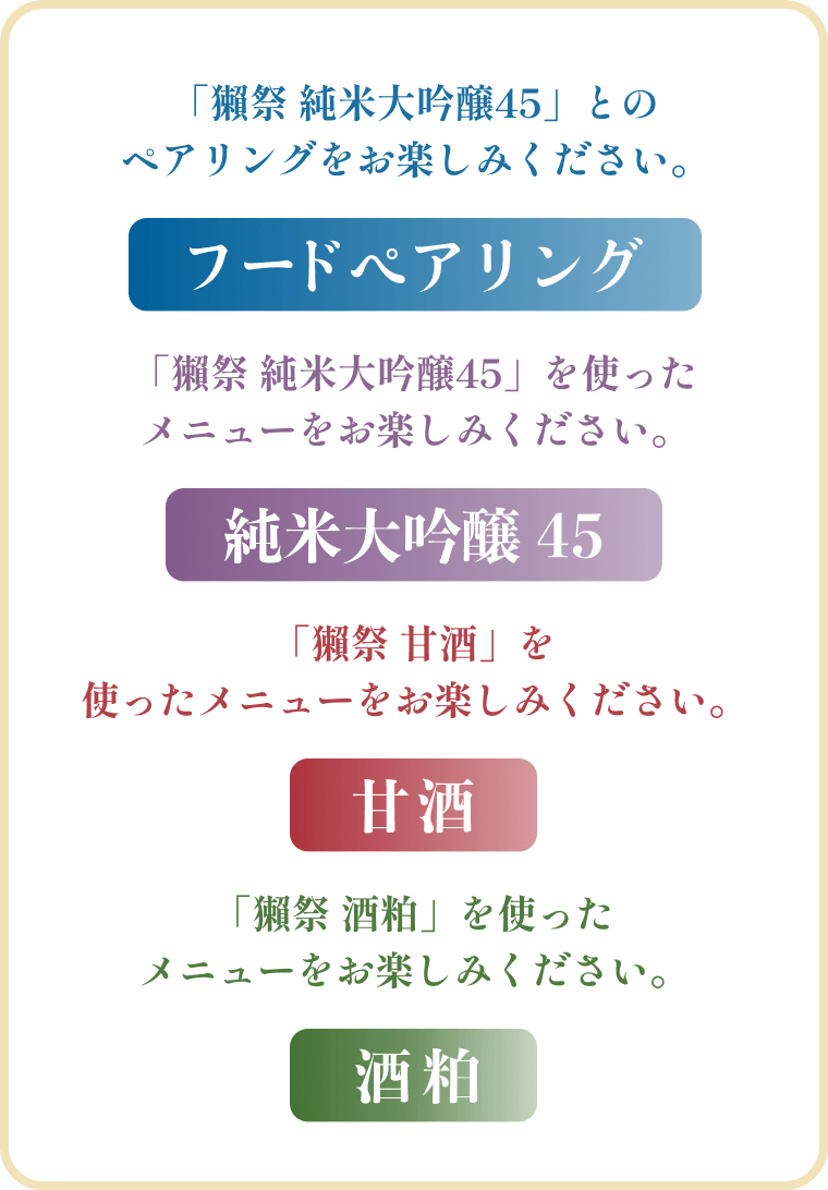 世界中から愛される名酒である、日本酒 獺祭と各店のスペシャルメニューとの