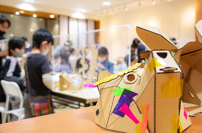イベントでは、そんなダンボールをアート作品へと新たに再生するダンボールアーティストの作品展示「ダンボールアート展」や、廃材となったダンボールを使ってアーティストと一緒に自分だけのオリジナルダンボールアートづくりが体験できるワークショップを開催し、多くの方にお楽しみいただきました。