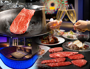 ランチメニューのステーキは職人が本格的な鉄板で美しくジューシーに焼き上げます。みなとみらいの海をテーマにしたブルーの間接照明が揺れ動く店内は心を癒す非日常的な空間で、ゆったりとした時間をお過ごし頂けます。