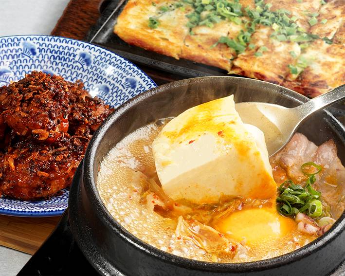 大豆イソフラボン、カプサイシン、コラーゲンを1度に摂取できる“純豆腐”に、野菜をたっぷり使った“ビビンパ”や低脂肪高タンパクの“韓国チキン”、整腸作用や免疫力アップが期待できる“キムチやナムル”などを、薬食同源という韓国料理の伝統思想に基づき、おいしく、そして楽しく食べながら、美しく健康になることを目指したい方のためのお店です。