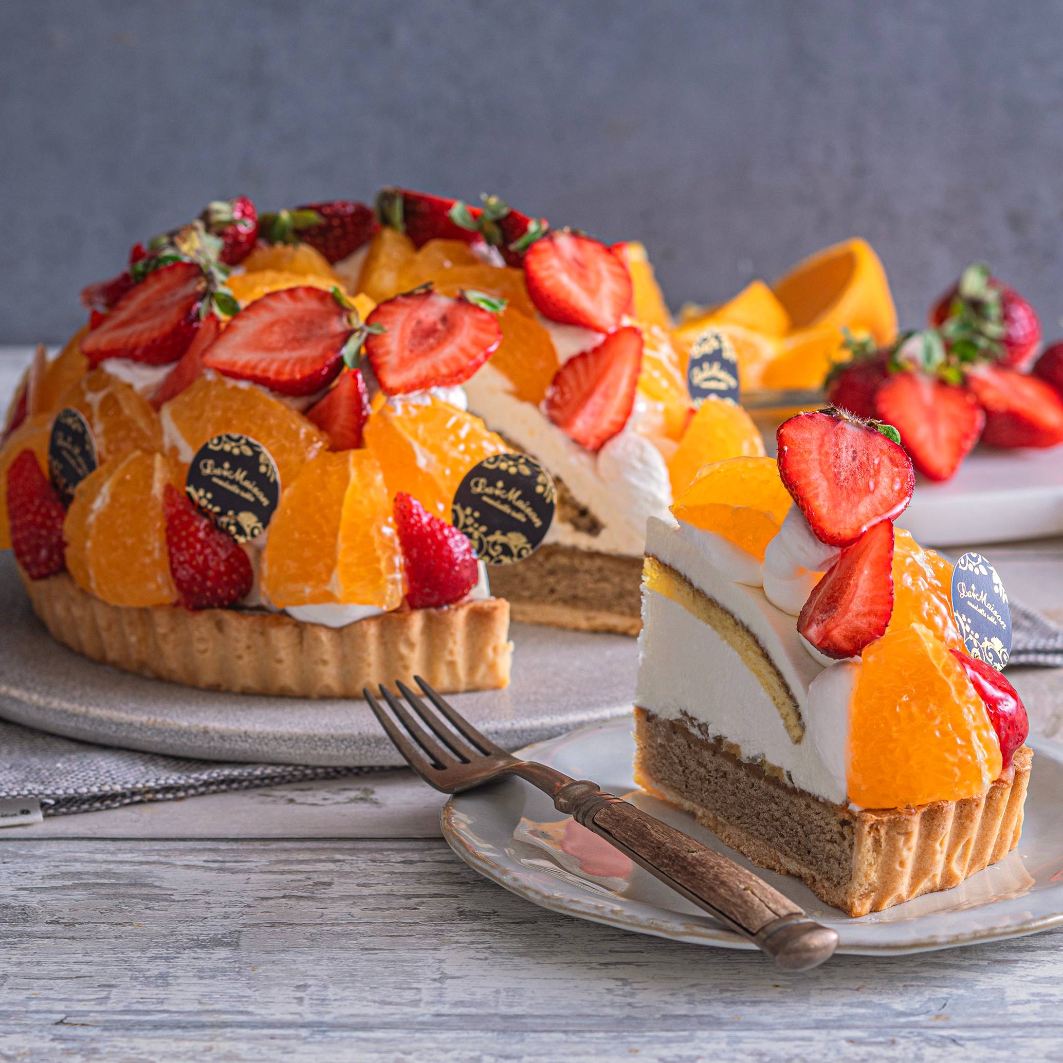 香ばしいほうじ茶ケークタルトにさわやかなゆず香るマスカルポーネクリームを重ね、みずみずしい不知火とあまおうを飾りました。