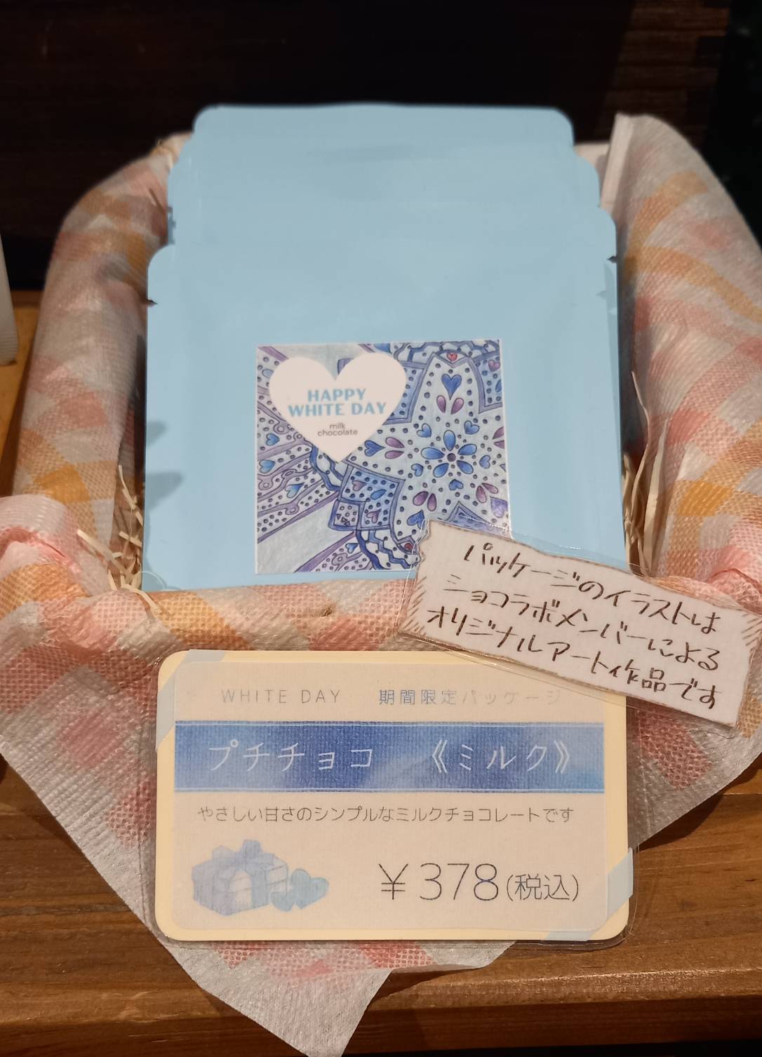 人気のプチチョコ【ミルク】のホワイトデー限定パッケージ販売スタート!パッケージのイラストはショコラボメンバーによるオリジナルアートです。ホワイトデーのプレゼントにおすすめです!