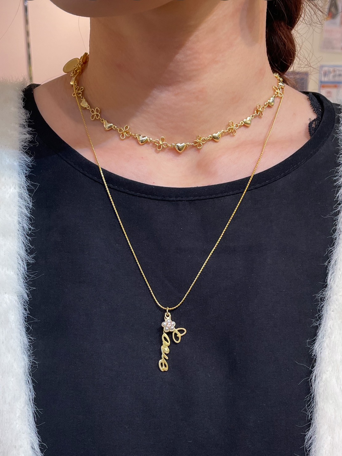 Loveの文字と小さなお花モチーフをゴールドコーティングで華やかに仕上げました。