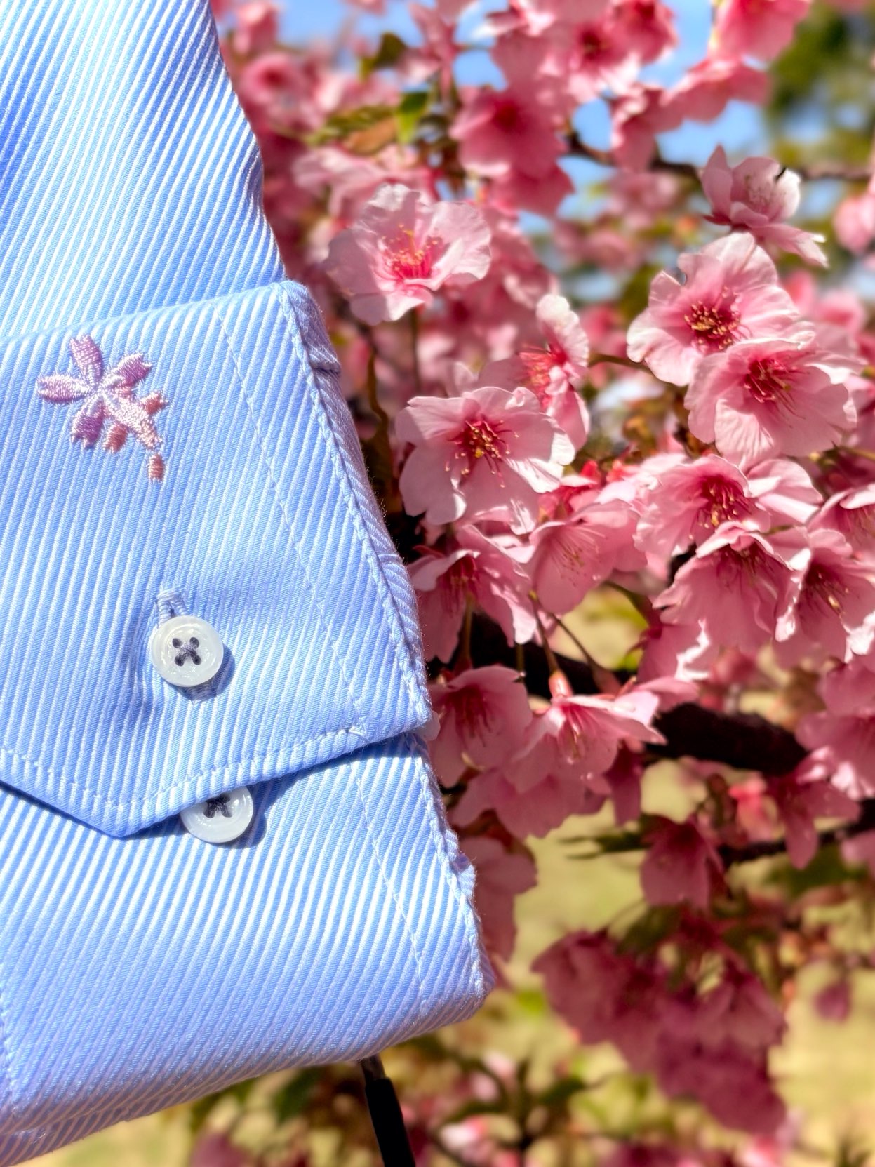 臨港パークや日本メモリアルパークでは早咲きの桜が咲いています。またこの季節が来たなと思いながら、桜刺繍シャツと撮影をして来ました!