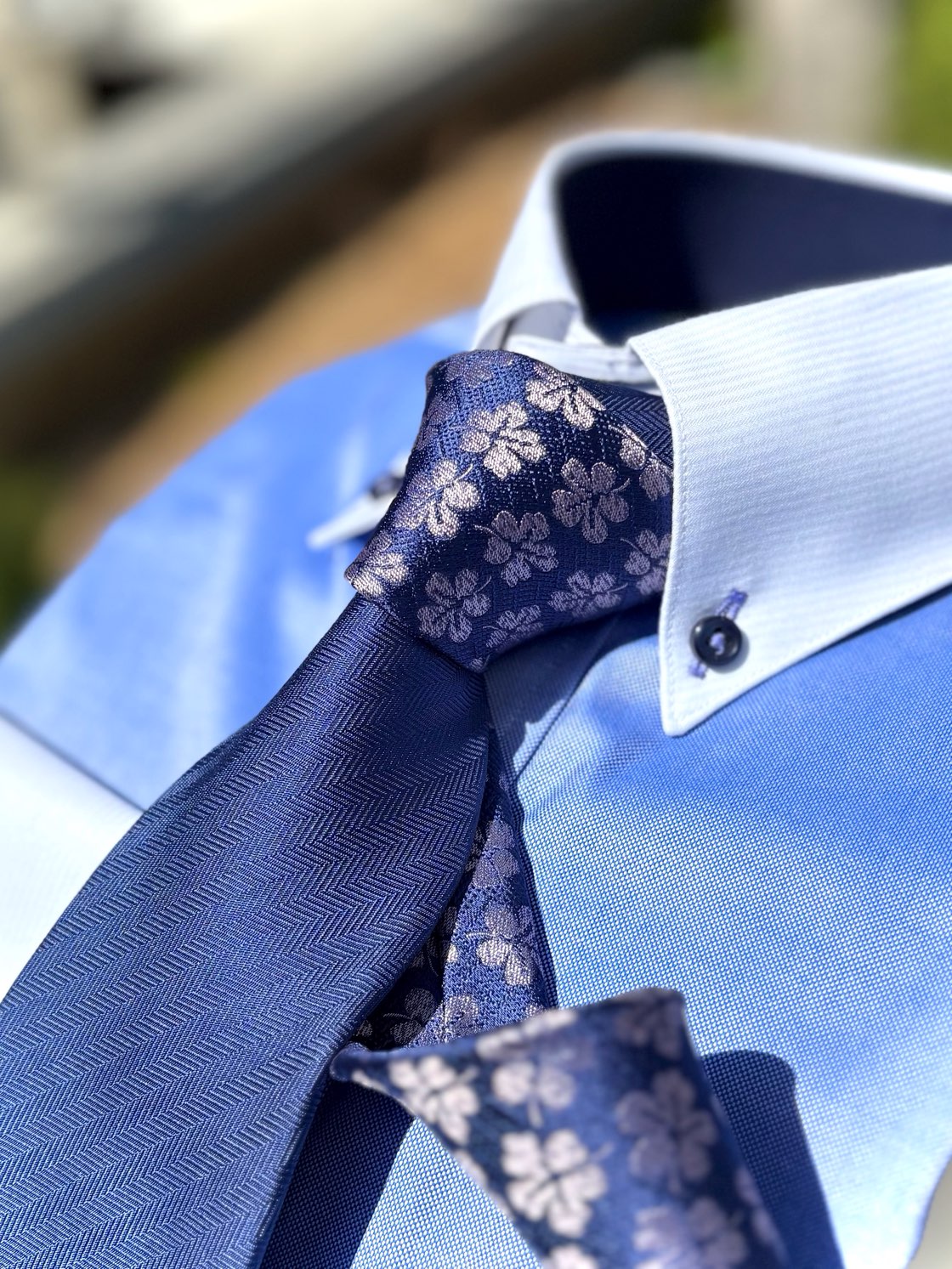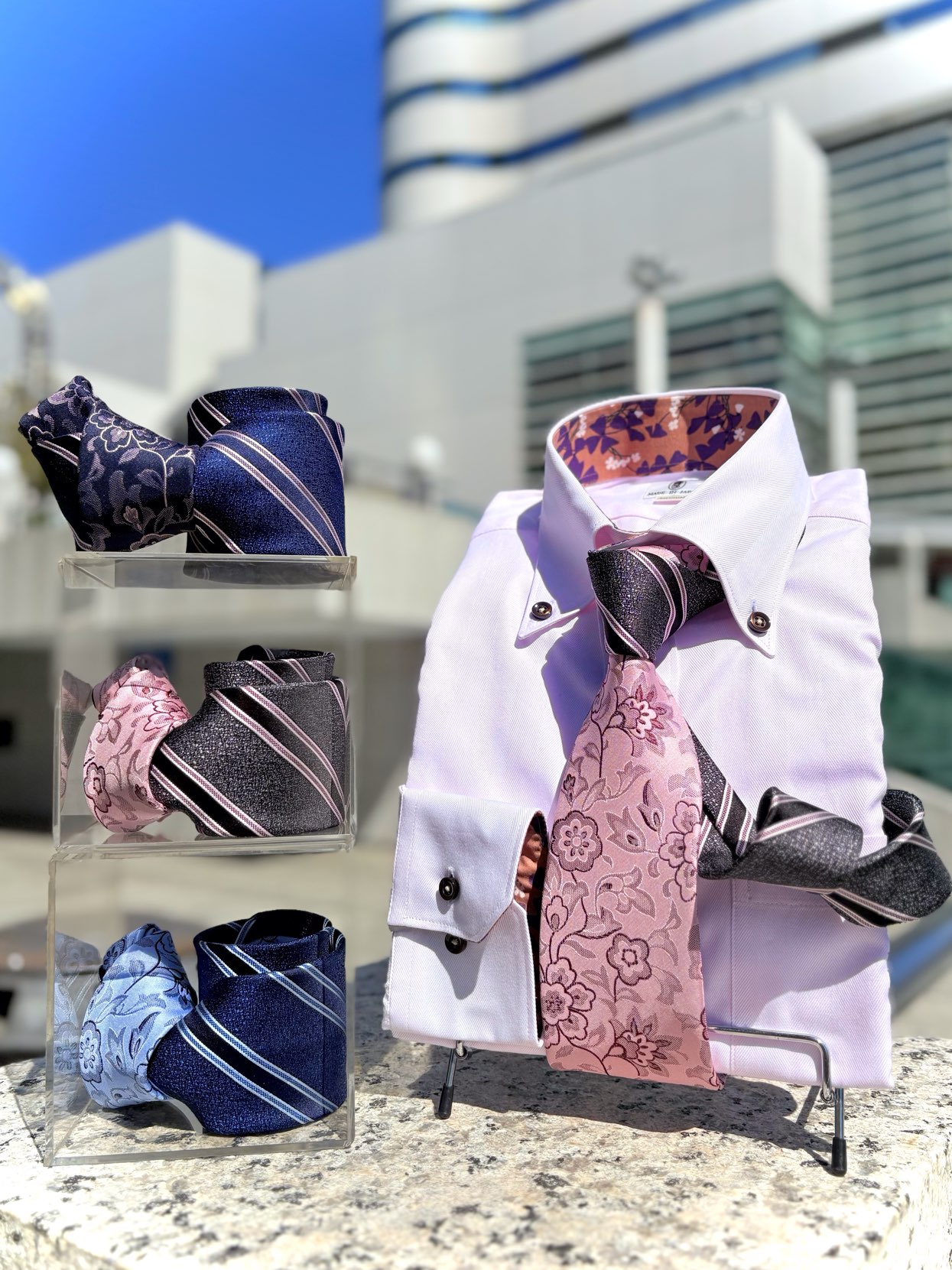 有り難い事に最近ではネクタイのお求めが大変増えています。こちらの結び目と大剣部分の柄が変わるクレリックタイも、入荷した日からインスタ投稿が間に合わないスゴい勢いで次々と購入して頂いております!