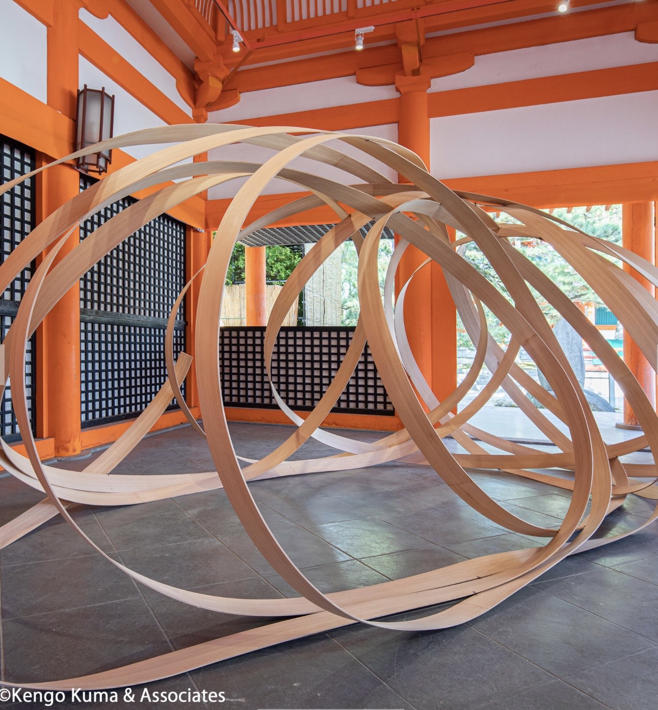 吉野杉の曲木をぐるぐると一筆書きのようなラインで巻いたパビリオンがデザインソースの人気シリーズにK18が登場。