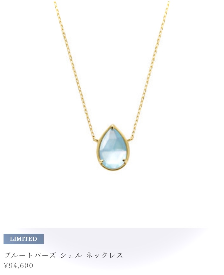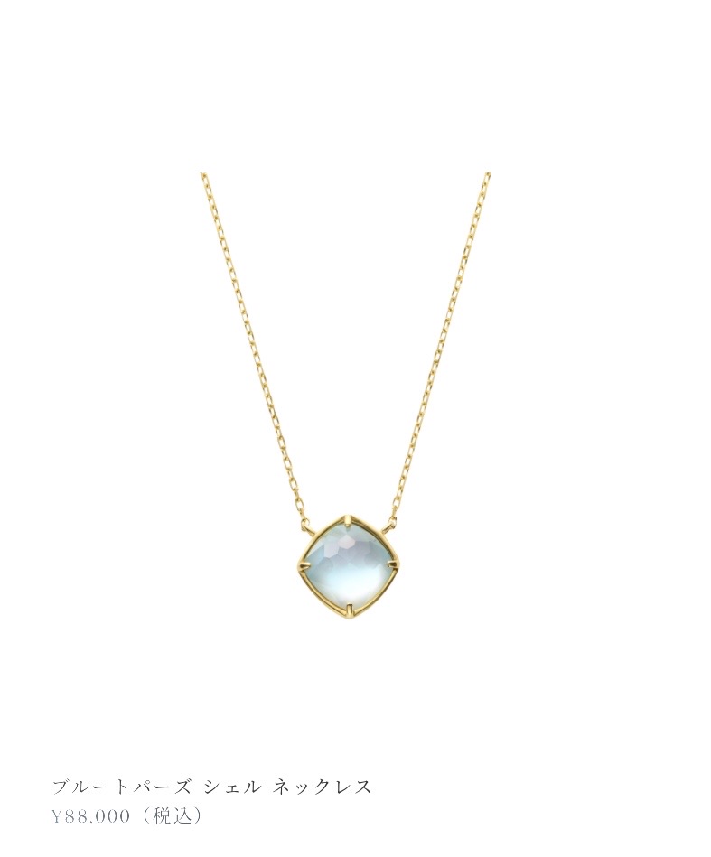 シェルにブルートパーズを重ねたダブレットストーンの涼やかで美しい色合いが印象的なネックレス。