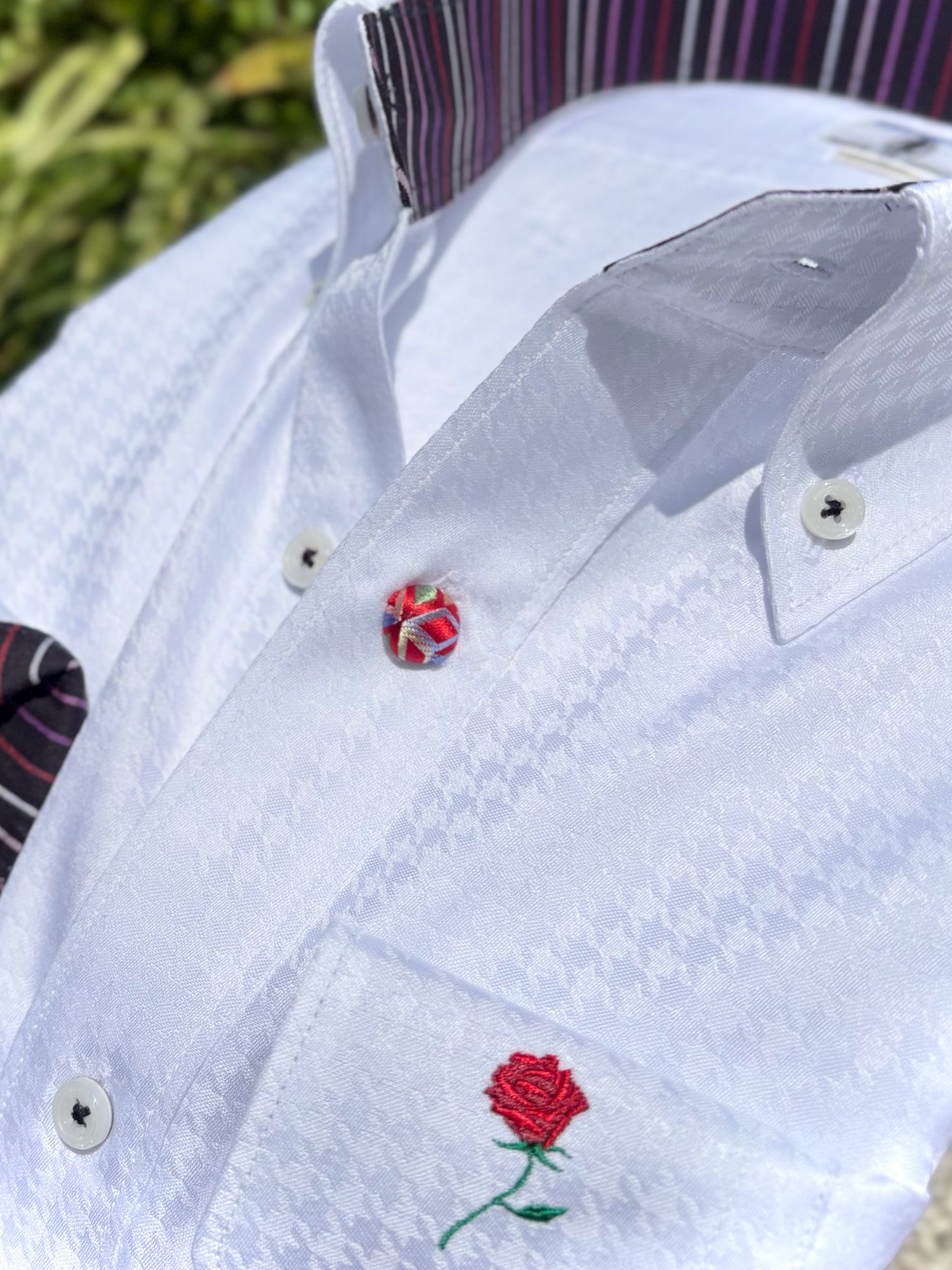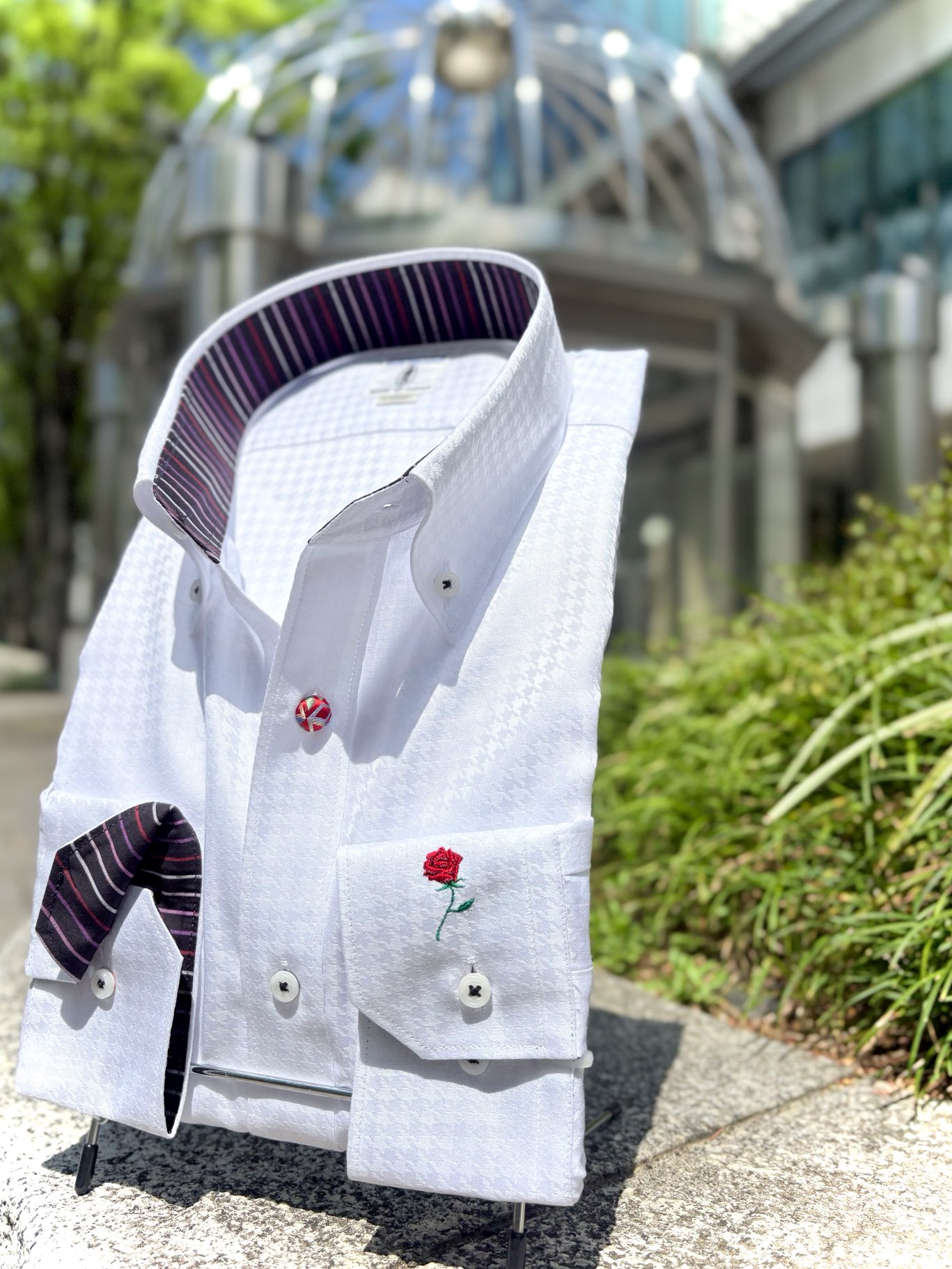 本日は、一輪バラ刺繍の長袖シャツのご紹介です!
